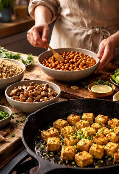 Top veganske ideje za vsak dan 2026 temeljijo na dveh stvareh. Na dobri organizaciji toplote in teksture, torej na tem, kako se sestavine obnašajo v ponvi, pečici in loncu. In na pametni shrambi, kjer imajo stročnice, žita, začimbe, fermenti ter omake vlogo pospeševalcev okusa. Ko so ti temelji postavljeni, veganski krožnik ni odrekanje, ampak čista kulinarična logika.