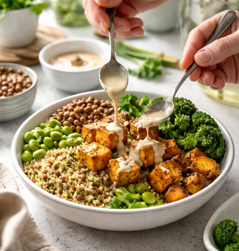 Beljakovinsko bogata veganska kuhinja je najboljša, ko je praktična. Smiselno je imeti v shrambi več vrst stročnic, konzervirane in suhe, saj imata vsaka svojo prednost. Konzerva rešuje čas, suha stročnica pa prinese boljšo teksturo in nižjo slanost. Zamrznjen edamame je pogosto spregledan adut, ker se skuha v nekaj minutah in deluje v solatah, skledah in toplih jedeh. Tofu in tempeh sta osnovna elementa, ki ob pravilni pripravi nista kompromis, temveč kulinarična izbira.