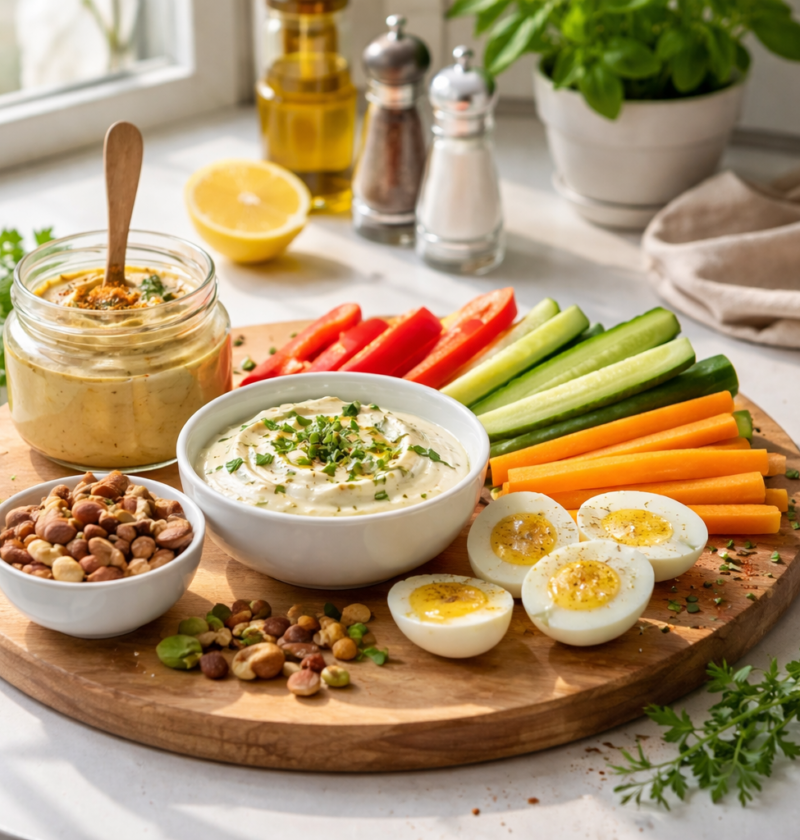 Najboljši prigrizek je tisti, ki je pripravljen, ko je glava polna. Zato se obnese kuhinjska organizacija, ki spominja na profesionalni mise en place, le v domačem merilu. Če se enkrat ali dvakrat na teden nameni 30 minut, se lahko pripravi osnova za več različnih zdravih prigrizkov. Trdo kuhana jajca v lupini zdržijo v hladilniku več dni, grški jogurt lahko postane slana osnova z zelišči ali sladek prigrizek z jagodičevjem, čičerika pa se lahko spremeni v namaz ali hrustljavo pečen prigrizek.
